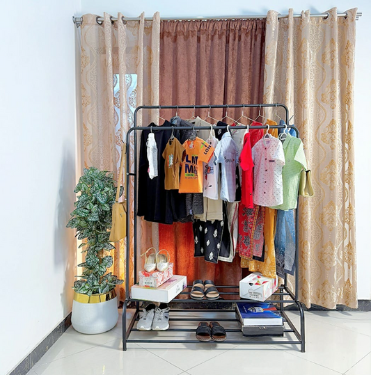 Double Pole Cloth Hanging Stand X Single Shoe Rack by Auctor Store